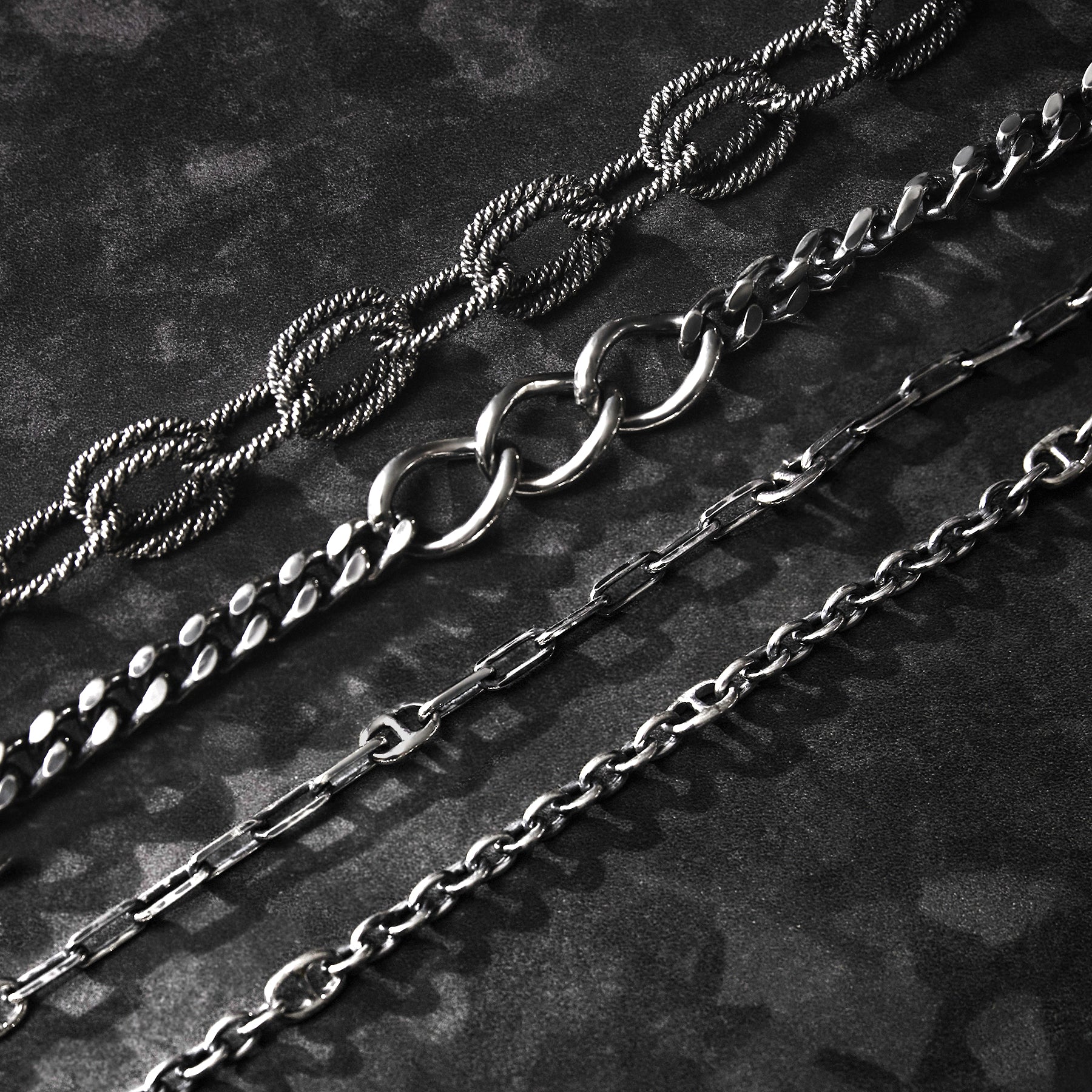 片側はベルトループに掛けやすいフック、反対側は着脱のしやすいロブスタークラスプ仕様。デニムやワークパンツ、スラックスまで幅広いスタイルに馴染み、ウォレットチェーンやキーチェーンとしても活用出来る。