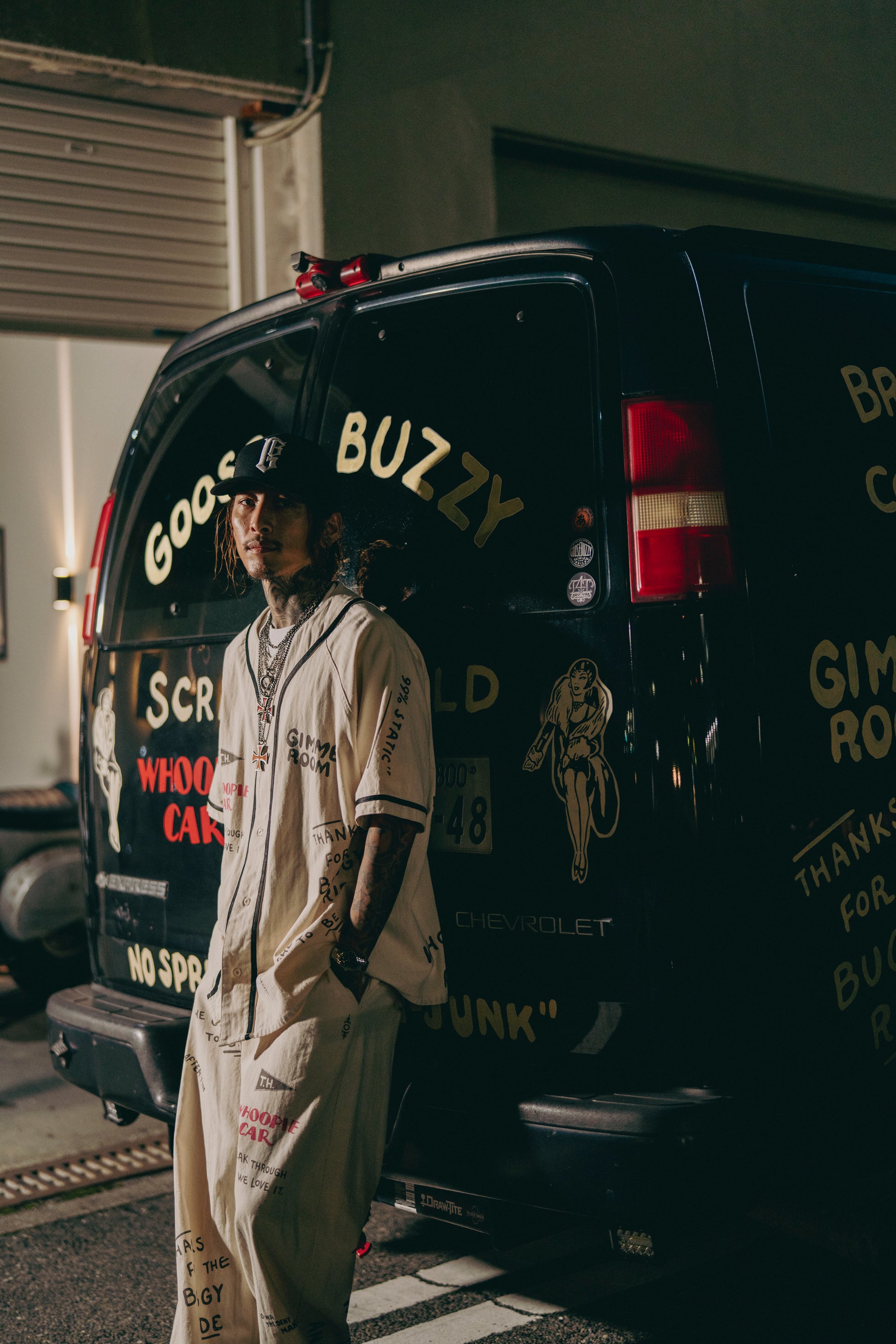 肉厚なコットンヘリンボンを使用した、ベースボールシャツ。肘までかかるラグランスリーブ、ゆったりとしたシルエット。シルクスクリーンで馴染みの良いプリント。