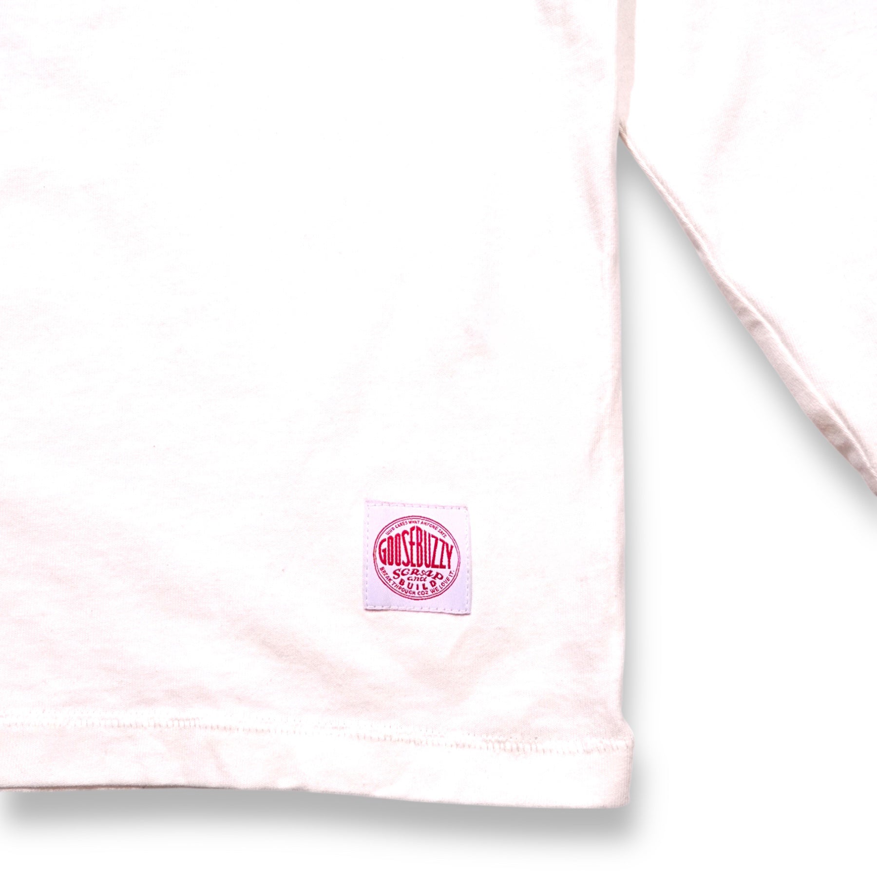 オリジナルボディで製作した、長袖Tシャツ。8オンスヘビーウェイト天竺を使用し、ヘタリにくいタフなボディ。落ち着いたグラフィックは、フロッキープリントで表現。