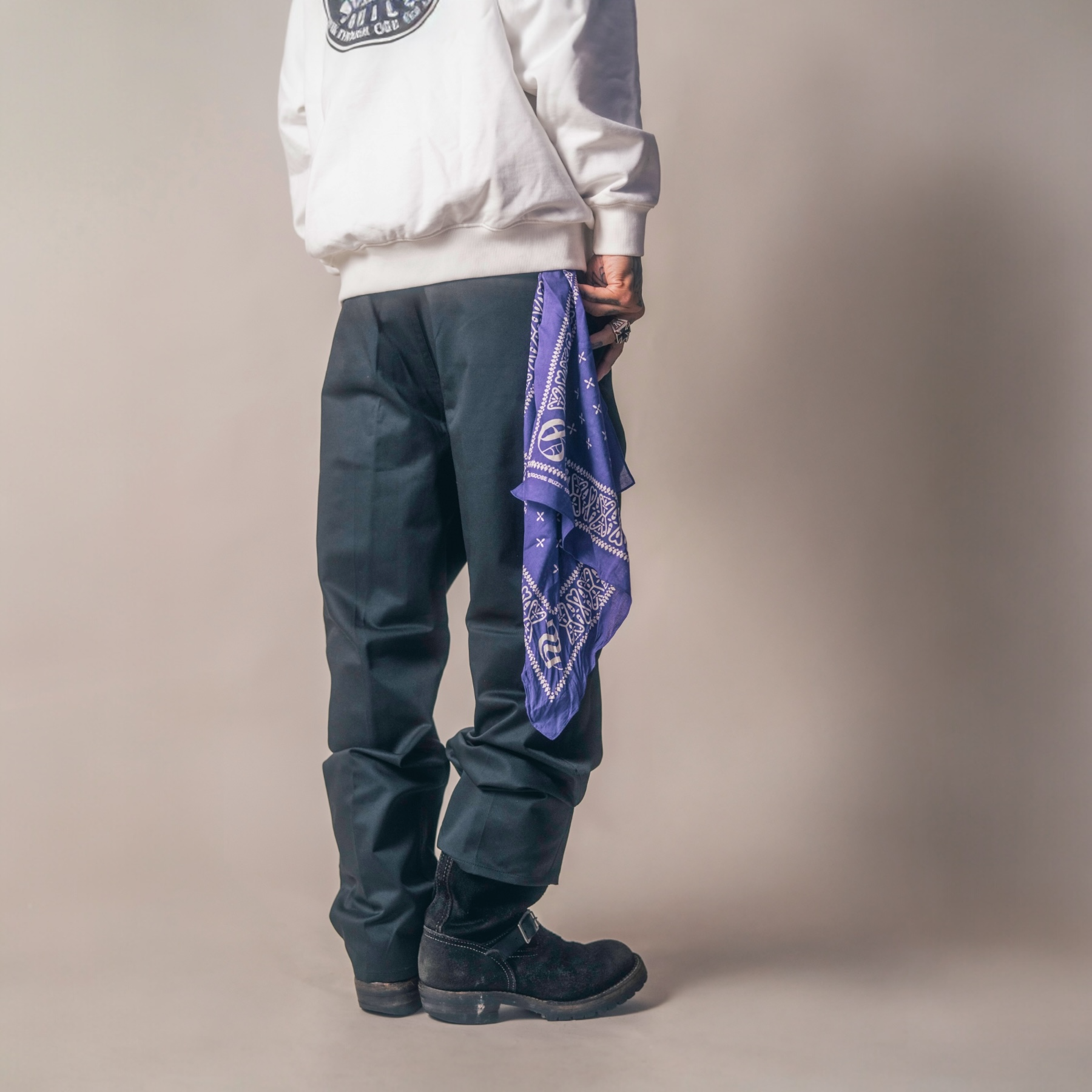 片耳セルビッチ仕様、抜染プリントで柔らかな風合いのオリジナルバンダナ。